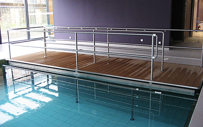 治療系列主要是為健康專業(yè)人員設(shè)計(jì)的。此系列的活動泳池地面均配有符合公共建筑安裝標(biāo)準(zhǔn)的升降系統(tǒng)。配備了走道和扶手,以確保患者的安全。升降系統(tǒng)是用以將病人輕輕放入水中。