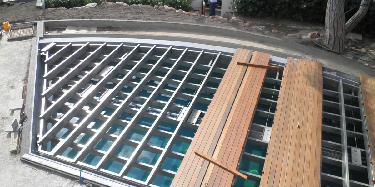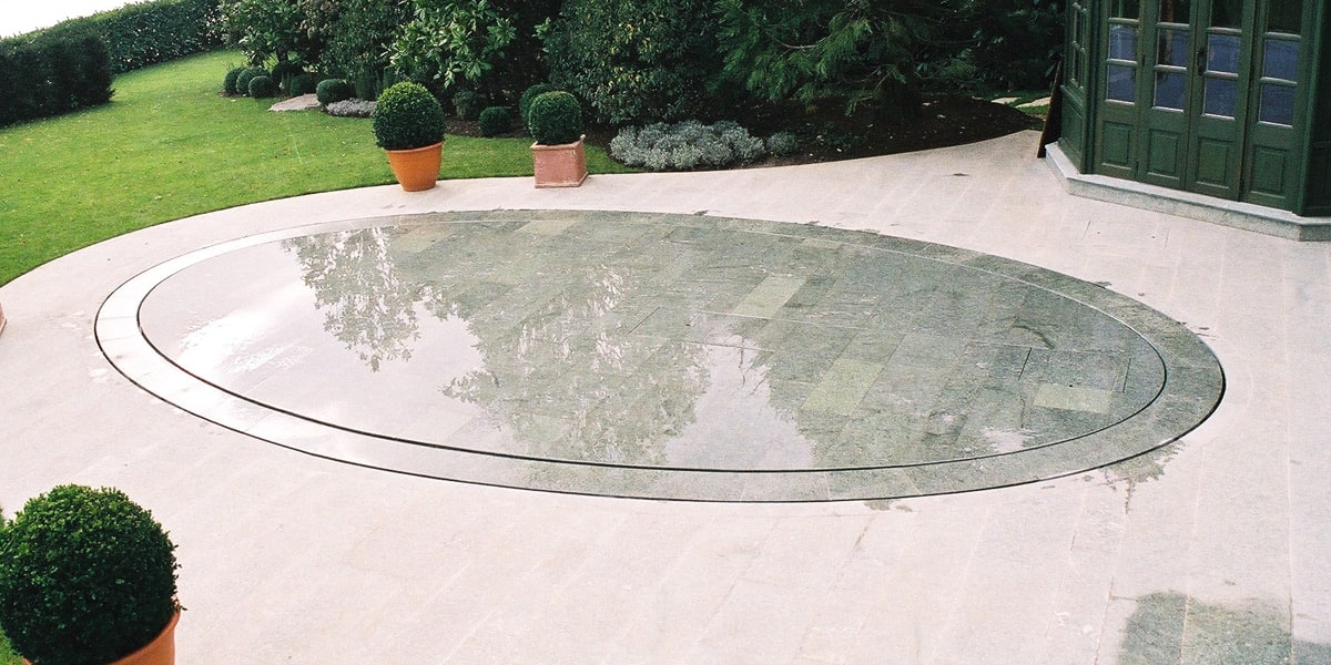 一旦地板升至高,帶有升降式地板的游泳池就完全從視線中消失了,在里面游泳是不可能的。然后地面重新出現(xiàn),您可以將其變成露臺,享受完美的放松夜晚。